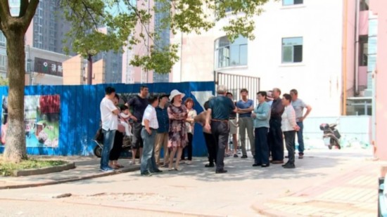 记者正在采访的时候,十几个小区居民强行推倒了彩钢瓦。为了防止矛盾激化,记者联系了当地派出所和城管部门。随后,幼儿园的负责人也来到了现场。