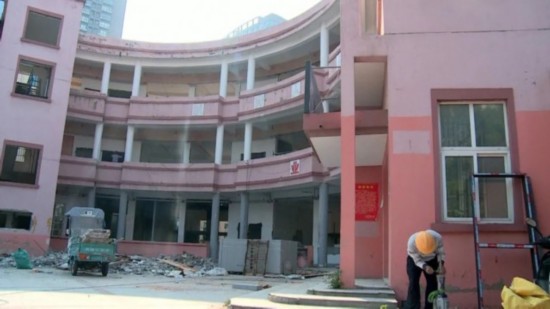 居民们介绍,去年,小区西门这幢大楼被法院拍卖,今年五月份,居民们得知,这里将被改造成一家幼儿园。此后,每天一大早工人就开始进场装修,噪音很大。