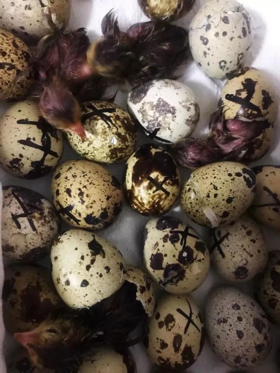 不过,有眼尖的网友指出,这一批鹌鹑蛋的蛋壳上,被记号笔做过标记,可见是受精的、能孵出鹌鹑的鹌鹑蛋。