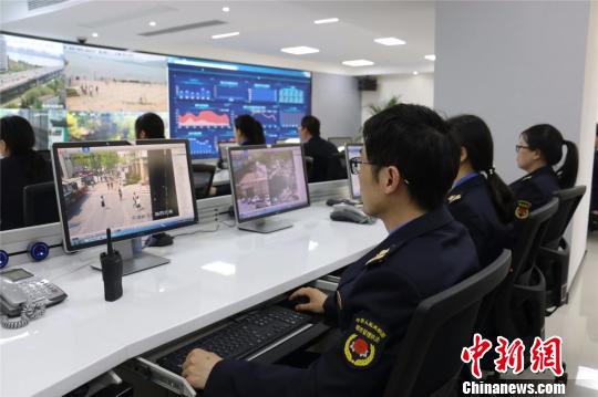 工作人员值守智慧城管指挥平台。 张煜欢 摄
