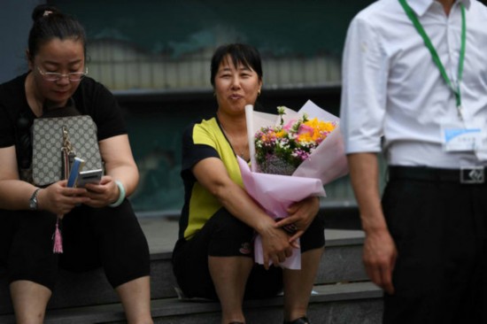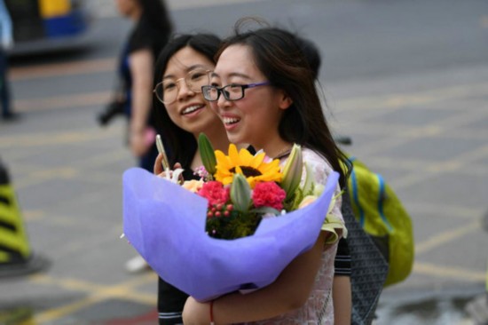 相拥、送花、合影……今天下午4点40分,伴随着最后一科英语考试的结束,2019年北京高考正式收官。北京青年报记者在人大附中门口看到,不少家长早早就准备了花束在校门口等候,第一时间接到孩子。今年不少家长都准备了纯向日葵花束或夹着一朵大向日葵的花束,因为向日葵有着一举夺“葵”的妙意。由于天气较为炎热,不少家长还给考生准备了冰淇淋。