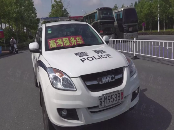 警车与外语听力考试“赛跑”