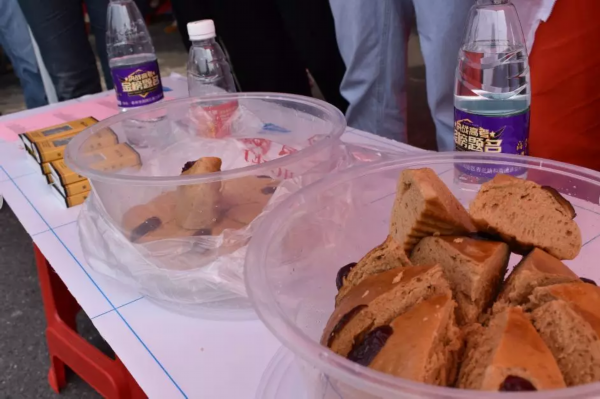志愿者们为考生和家长们准备了糕点,祝福所有考生金榜题名。