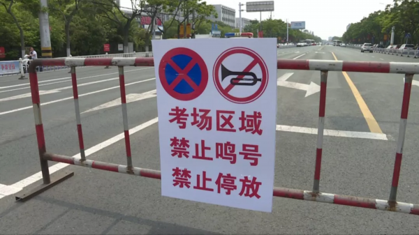 因为有广大交通参与者的配合,听力考试期间,考点周围十分安静,周边马路上没有一辆汽车在行驶,非机动车也远离考场。