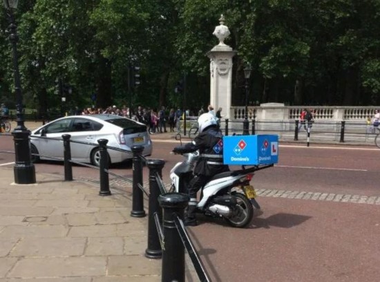 在白金汉宫门口的达美乐披萨店外卖员(图源:《太阳报》)