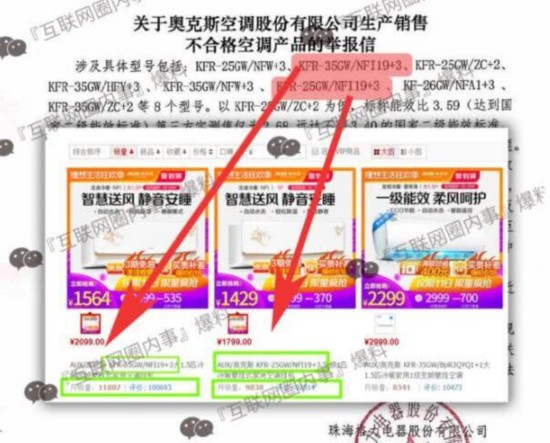 1、格力举报的8款产品,其中两款,分别是奥克斯官方旗舰店的销量冠亚军,也是格力此次重点狙击的对象