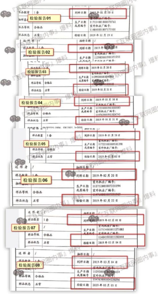 格力在0610晚上21:30的时候放出了8份由四川省电子产品监督检验所出具的检测报告: