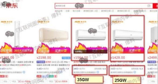 而在京东上,这个数字更加夸张,京东搜索奥克斯空调,这两个型号排在第三位和第四位,累计评价已经高达28万+(KFR-35GW/NFI19+3)、31万+(KFR-25GW/NFI19+3)。