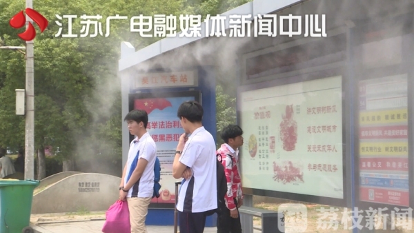 除了留园,在吴江汽车客运站的公交站台,也试点安装了这样的“降温神器”,喷出的水雾弥漫了整个站台,温度有了明显降低。工作人员通过温度计现场测量,此时站台外的地面温度为36度以上,而站台区域内的温度则在33度左右。