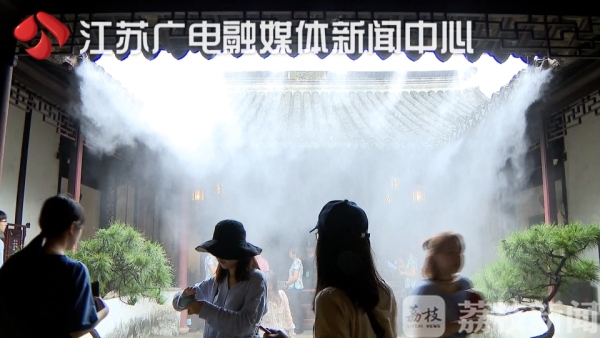 在苏州留园景区的轿厅处,屋檐下一排细小的喷嘴中不时有水雾喷出,给游客带来丝丝凉意。这套系统就是苏州今年引进的降温喷雾系统,也被称作“户外空调” ,通过空气加湿从而达到降温效果。
