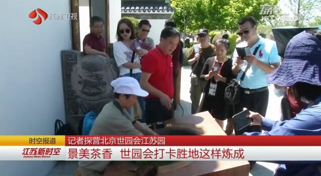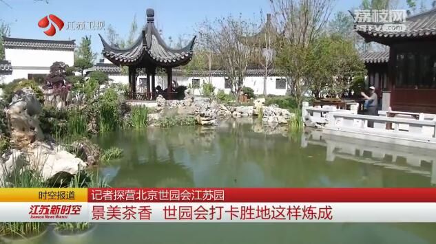 江苏台记者王鹏:“在世园会的江苏园,来自江苏的能工巧匠将江南美景搬到了长城之外的妫水河边,也让这里成为了游客们的打卡胜地。”