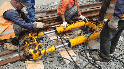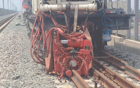 ▲沪通铁路K922焊轨机进行闪光焊轨