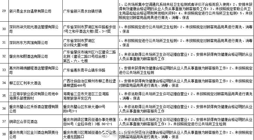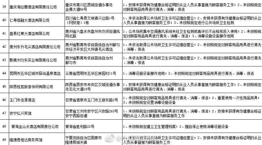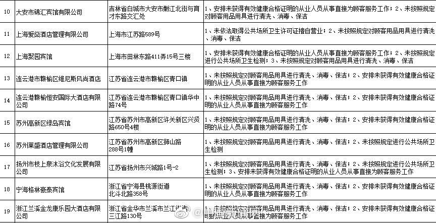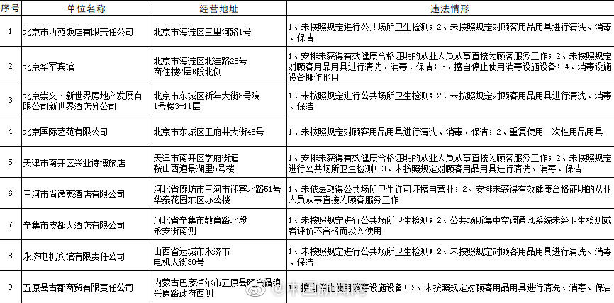 针对住宿类公共场所暴露出的卫生问题,2019年初国家卫健委部署开展住宿场所卫生专项整治。日前,国家卫健委通报专项整治情况,截至2019年3月31日,各地卫生健康部门共报告监督检查住宿场所157011家,责令25868家单位整改,依法对3474家单位立案查处。看看这些上榜的酒店,你住过么?