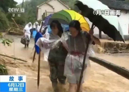 10日上午8点,雨逐渐停了,救援人员决定,继续带着被困村民向山外转移。尽管增援队伍已经抵达,但向外转移,仍然无比艰难,很多地方根本就没有路,救援人员背起老人和孩子,搀扶着孕妇,向山外出发。很多地方水流太急,救援人员跳进水里,组成人墙,再牵着绳索,让被困的村民通过。