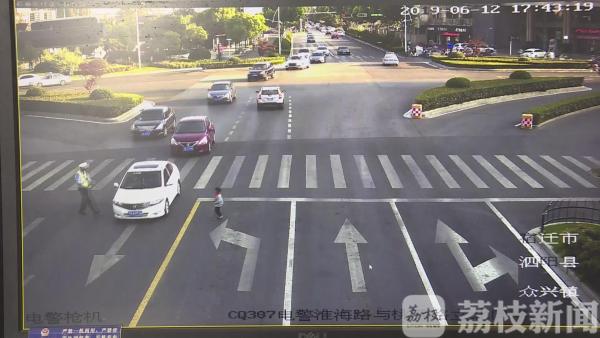 监控画面显示,当天下午五点四十分左右,在泗阳桃源路与淮海路交叉路口,一名幼童突然闯进机动车道,从马路的西边快速向东边跑去,期间,险些被一辆由南向北直行的小轿车撞到。