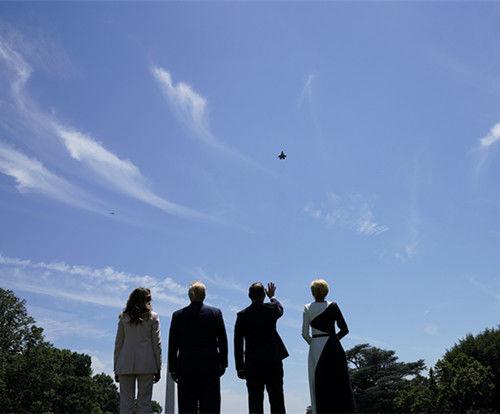资料图:特朗普夫妇和波兰总统夫妇观看美军F-35战斗机低空飞过白宫(视觉中国)