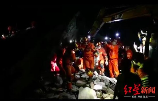 18日凌晨3点10分,红星新闻记者位置在震中宜宾双河镇葡萄村8组,有祖孙两代共三人被埋,目前矿山救援队队员正在用吊车对祖孙三人进行紧急救援。据附近村民介绍,被埋者爷爷李某、奶奶王某均50多岁,孙子8岁,孩子父母正在赶往双河镇的家中。目前现场仍有余震不断。