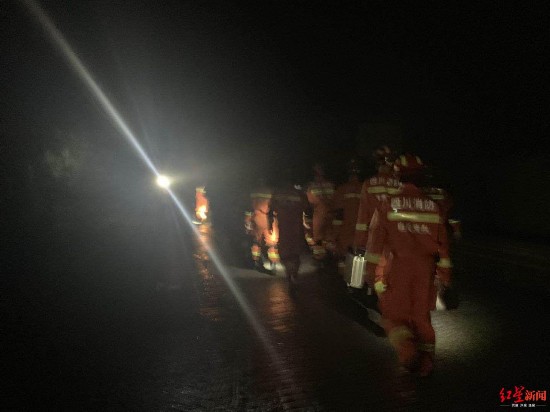 6月18日凌晨4时许,四川自贡消防在赶赴地震灾区途中遭遇山体滑坡,导致道路堵塞,车辆无法通行。为第一时间抵达指定地点宜宾珙泉镇,救援力量决定徒步前往。57名消防救援队员徒步挺进目的地,徒步里程为15公里。