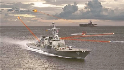 激光武器利用光束输出巨大能量,与目标材料相互作用,产生不同杀伤破坏效应,是一种定向能武器。由于激光武器具有快速、灵活、精确和抗电磁干扰等特性,在光电对抗、防空作战中能够发挥独特作用。多年来,为保持装备发展“代差”优势,美军一直加紧激光武器研制工作,早在1977年美海军就曾推出中波红外高能激光武器,并进行一系列打靶试验。