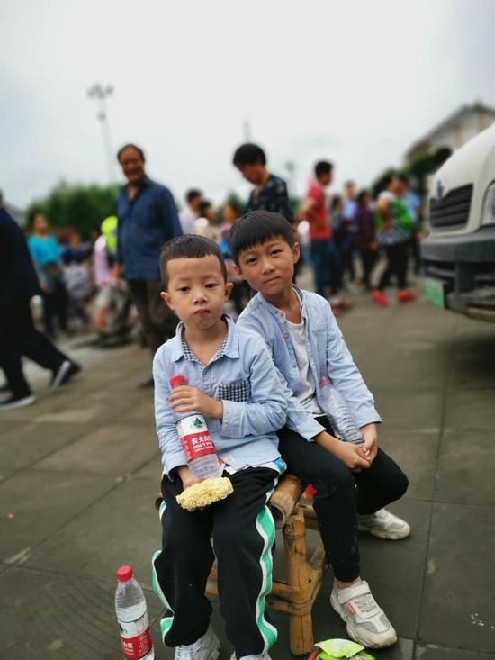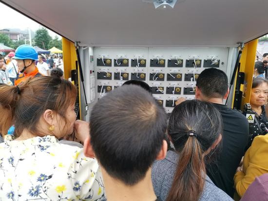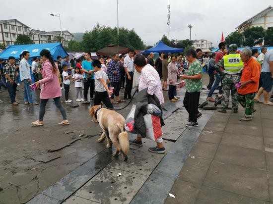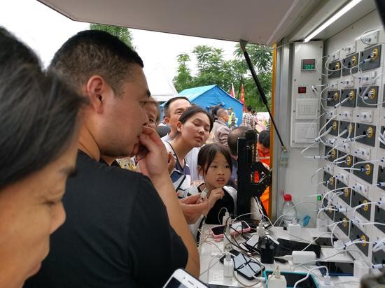 原标题:震中直击:双河镇居民排队领取方便面和饮用水,充电车很方便