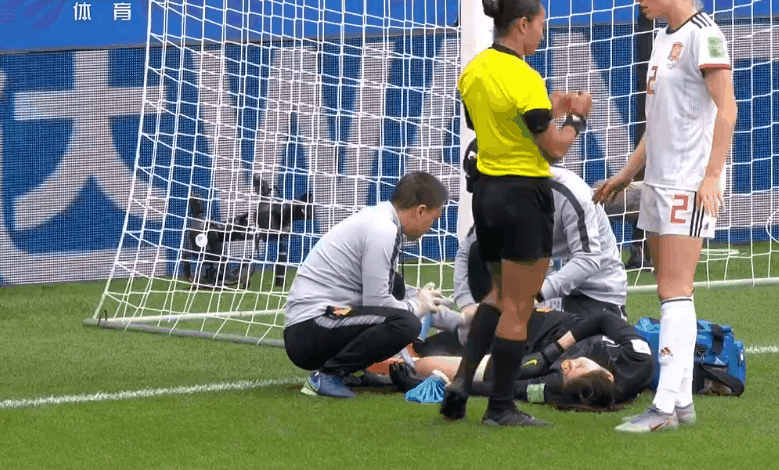 下半场第88分钟,彭诗梦在防守一次角球时奋勇扑救,结果重重地撞在了门柱上,倒地治疗了好长一段时间。最后她还是重新回到比赛,但脸上痛苦的表情,让中国球迷都难免心疼。