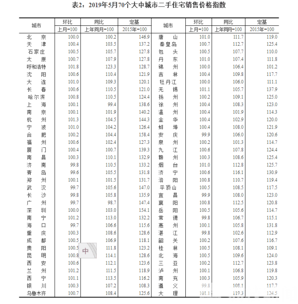 国家统计局今天(6月18号)发布70个大中城市住宅销售价格5月报告。
