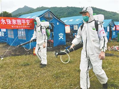 西部战区领导介绍,地震造成当地环境突变并污染了水源,且随着夏季气温升高和救援时间的逐步推进,很容易出现灾后流行性疫病。救灾指挥部组织专业力量对救援现场、灾区附近的集中居住场所、倒塌建筑物实施消毒、杀虫、灭菌等工作,对当地水源特别是饮用水源进行检测和净化处理。