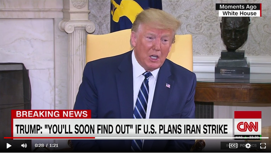 特朗普在与CNN记者的交流中说:“伊朗可能犯了一个错误。我可以想象,是一位将军或是某个人在击落(美军)无人机时犯了错。”