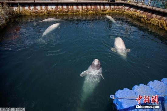 据报道,2018年,俄罗斯远东的纳霍德卡港出现一座“鲸鱼监狱”,多达90头白鲸和11头虎鲸被关在一个海洋围场内。这些鲸鱼均未成年,其中13头白鲸不足1岁。后来有3头白鲸和1头虎鲸从网箱中消失。