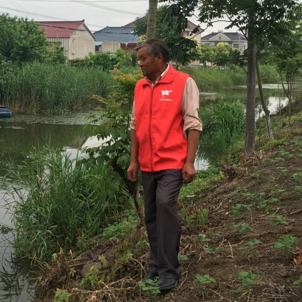 沈怀友是角斜镇角斜村的一名村民小组长,也是远近闻名的“民间河长”。“河长制”开展以来,他主动报名担任村民间河长、护河工,打捞垃圾,几乎每天都要沿着河道走一遍。对老沈来说,义务巡河已经成为他生活的一部分。角斜村共有河道13条,沈怀友负责其中的7条。按照惯例,他每月要巡河12次,确保河道长效保洁。他说,以前一河两岸的村民乱丢垃圾的随性较大,河道脏乱差,水质不好,现在好多了,水也清澈,村民们都很高兴。作为民间河长,把干净整洁的现状保持下去义不容辞。