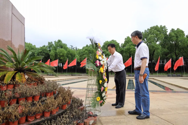 望母山的雪松翠柏之间,高大、雄伟的苏南抗日胜利纪念碑巍然矗立。上午9:30,院党委班子和全体中层干部满怀崇敬来到茅山新四军纪念馆,在庄严肃穆的新四军群像前重温入党誓词,在蒙蒙细雨中向苏南抗战胜利纪念碑敬献花篮、鞠躬默哀。