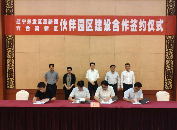 荔枝新闻讯 6月21日下午,南京江宁开发区高新园与六合高新区在六合区政府多功能厅举行伙伴园区签约仪式,双方将立足区域联动、产业协同、优势互补、利益共享,重点围绕创新活动、科技招商、创新主体、创新平台等方面展开深入务实合作。