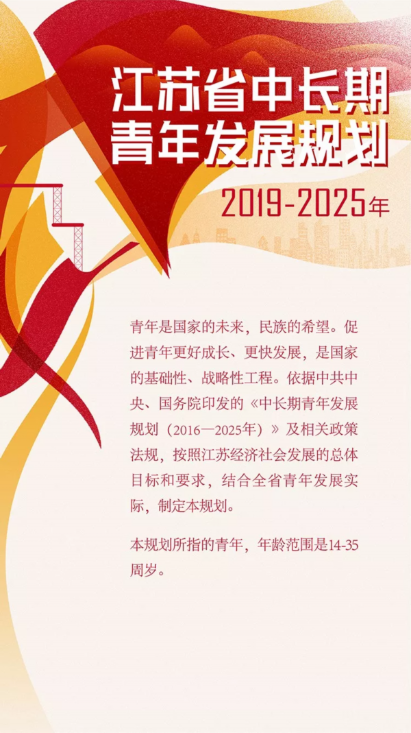 近日,《江苏省中长期青年发展规划(2019-2025年)》正式出台啦!