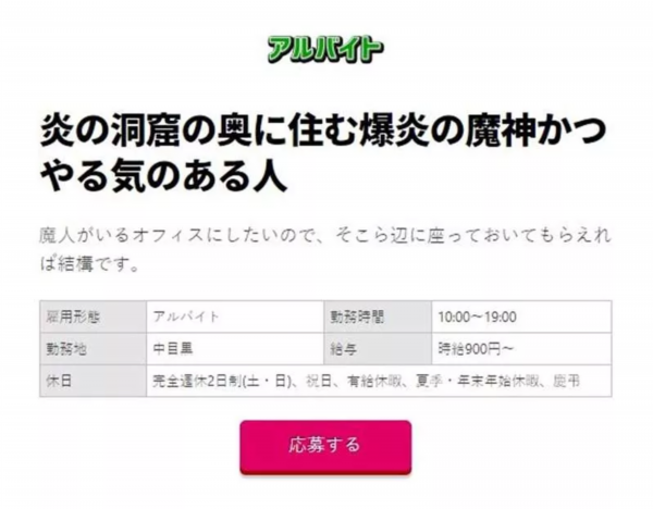 以希望公司出现一位魔人为理由特意发通告招聘新人,工作内容是去公司什么都不用干,只要坐在自己的位置上就好了。(;¬д¬)
