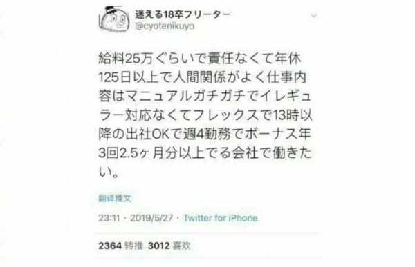 日推上有网友表示:“有没有一种公司,能够月入一万五,几乎什么都不用管,一年休息125天以上。和同事们的关系融洽,做事指南有条理很清晰,不用被突如其来的事情打扰。弹性工作制,上午休息可以下午1点再去上班,一周上四天,每年三次奖金,每次至少有2.5个月的工资,如果有的话我想要去这里上班!”