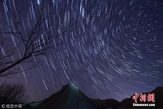 资料图:流星。(叠加合成图片)薛兵 摄 图片来源:视觉中国
