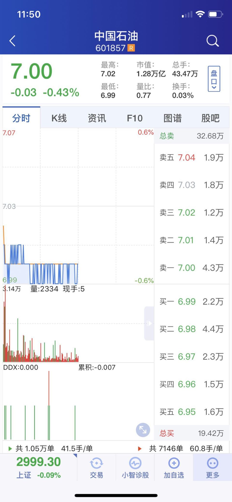 同日也是中国石油的股权登记日,每股派发现金红利0.09元(含税),股息率1.29%。