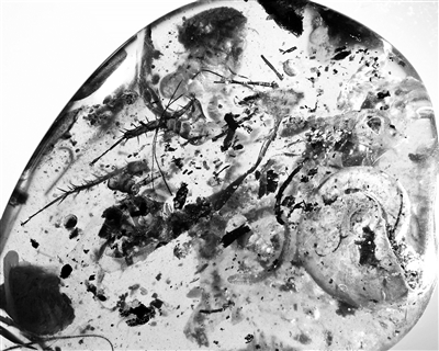 通过琥珀的清晰图片,琥珀内包含的虫子、螺壳等生物清晰可辨。这块琥珀长33毫米、宽9.5毫米、高29毫米,虽然体量不大,但是其中却包含着40多只古生物或古生物的遗骸,“这其中绝大多数都是螨虫和昆虫,但是最珍贵的,还是那个菊石的壳”。
