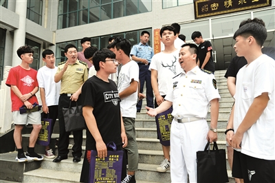 济宁军分区和军队院校招生工作人员深入到校园,面对面向刚参加完高考的学生介绍军队院校招生报考流程。张印东摄