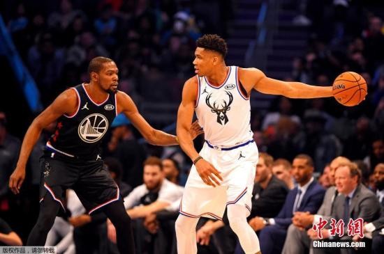 资料图:安特托昆博(白)在比赛中
