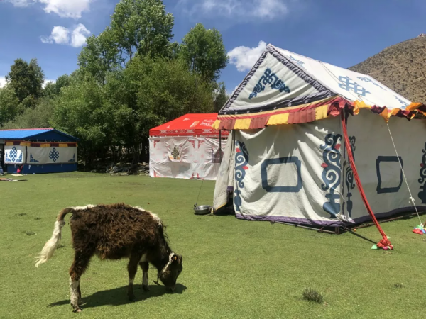 要说拉萨东郊的林卡地,白定肯定是许多人的首选,地方不算太远,环境又不错,所以每到周末,这里总聚集着许多过林卡的人们。在白定支沟沿路往上,顺着流水的草地上,都是村民们搭建的各式各样的帐篷。孩子们在此嬉戏,大人们谈天说地,偶尔还可以看到漫步至此觅食的牛儿,很是舒服。绿草映着远山,美不胜收。帐篷根据位置、大小等按天收费,从一两百元到五六百元不等。这里还有小卖部,水枪、零食、雪糕……在这里都能买到。