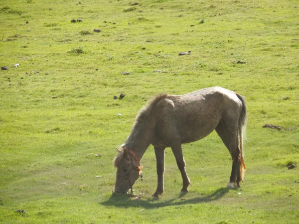进入达孜后继续东行,在达孜大桥附近可以看到一大片油菜花田。转入达孜大桥,大桥两边的景色也特别美。青青草地上,牛儿、马儿自有自的世界,与车来车往的喧闹隔绝,尽情享受天然的美味。阳光洒在碧蓝的河水上,周围的绿树与空中的蓝天白云的影子投在水中,让人心旷神怡。