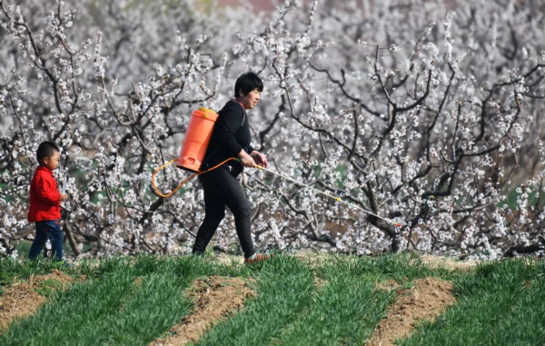 《阳春花开 惬意农忙》董乃德摄于山东邹平。