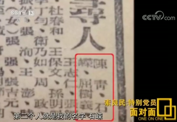 1948年,一直与索良民单线联系的中共地下党员张兆芳,介绍索良民加入中共情报所,索良民化名“石嵘”。作为“中共特别党员”,索良民的入党仪式在一片麦地进行。