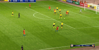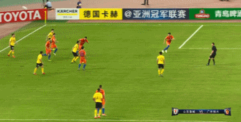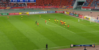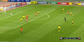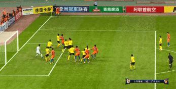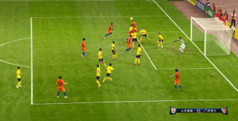 第57分钟鲁能获得左侧角球,蒿俊闵将皮球主罚到禁区内,刘军帅奋力欲要头球攻门,但却被冯潇霆再次头球解围出底线。紧接着蒿俊闵又将角球主罚到禁区内,这一次直接被恒大的防守球员直接解围。