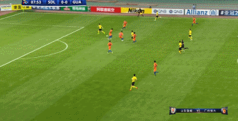 第51分钟金敬道在左路得到皮球,连续盘带晃过了回到后场补防的杨立瑜,随后他一脚似传似射将皮球输送到禁区内,但却将皮球直接打高。
