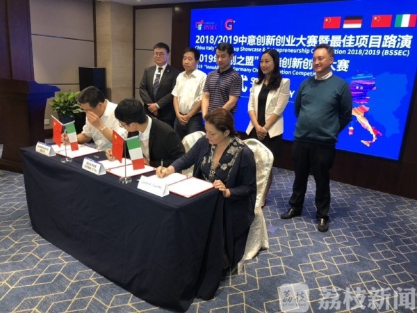 因首届全球菁英人才节而结缘,因龙头企业对接会而“喜结连理”。6月25日上午启动的中外创客创业训练营开营仪式上,举办了一场特殊的签约仪式,位于江宁高新区的南京郎熙环保科技有限公司就节电产品监测可视化技术与意大利项目Over SPA达成了产学研意向合作,位于东山总部园的吉普赛节能科技有限公司与意大利项目Personal Factory 就设备本土化、配套技术支持等方面达成了战略合作协议,成为展示人才节丰硕成果的一张靓丽名片。
