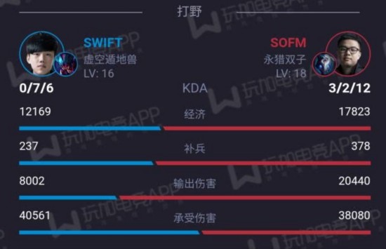 SofM独特的刷野路线、极具进攻性的打法和不要命式的野区入侵,让LPL选手包括观众眼前一亮,由此掀开了“狙击SofM”的热潮。Swift之后,下一位挨刀的是SAT战队打野CPT,两局比赛仅仅拿到一个人头,每局补刀数都被SofM拉开至100刀以上,再然后是Kid。虽然三连胜之后面对LGD的野王Eimy,Snake两场均以失败告终,但是他的发挥依然可圈可点,所以狙击SofM的行动依然在继续,观众也乐此不疲。