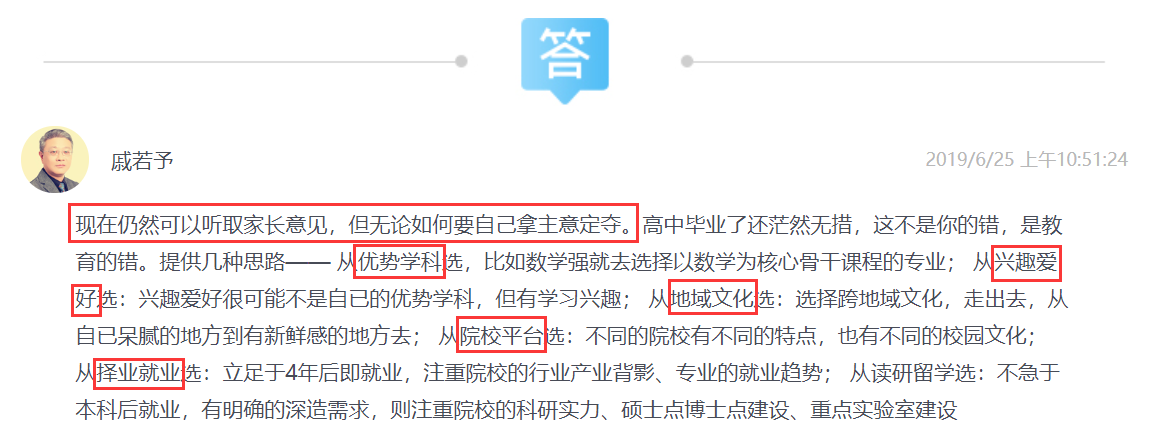 因此,荔枝问答——考得好更要填得巧,高考志愿怎么填?教育大咖来支招!一上线,关于专业选择的各种问题纷至沓来!小编且梳理其中三大“门派”,看大咖怎样一一拆解!