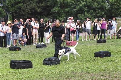据现场带犬的北京海关缉私民警李斯阳介绍,海关缉私犬根据任务需要主要分为缉毒犬、搜爆犬、濒危物种查缉犬、缉烟犬、搜币犬、护卫犬等。缉毒犬具备识别大麻、大麻脂、海洛因、可卡因、鸦片、冰毒、氯胺酮等7种以上毒品及毒品衍生物的能力。